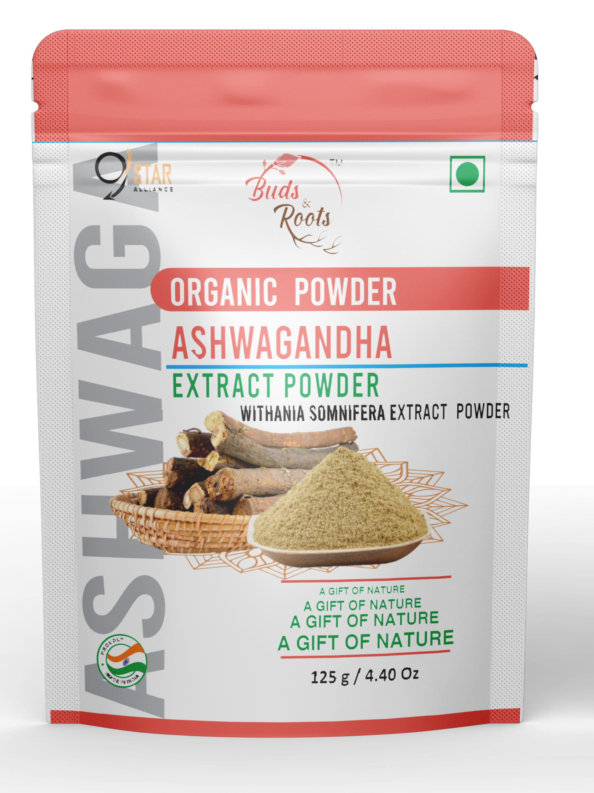 Buds & Roots Ashwagandha Extract Powder is made from high-quality ashwagandha roots and processed to obtain a concentrated extract rich in natural plant compounds such as withanolides. Revered in Ayurveda for its rejuvenating and balancing properties, ashwagandha extract helps support stress management, natural vitality, and overall wellness. Due to its concentrated nature, the extract provides a convenient way to incorporate the traditional benefits of ashwagandha into daily health routines.