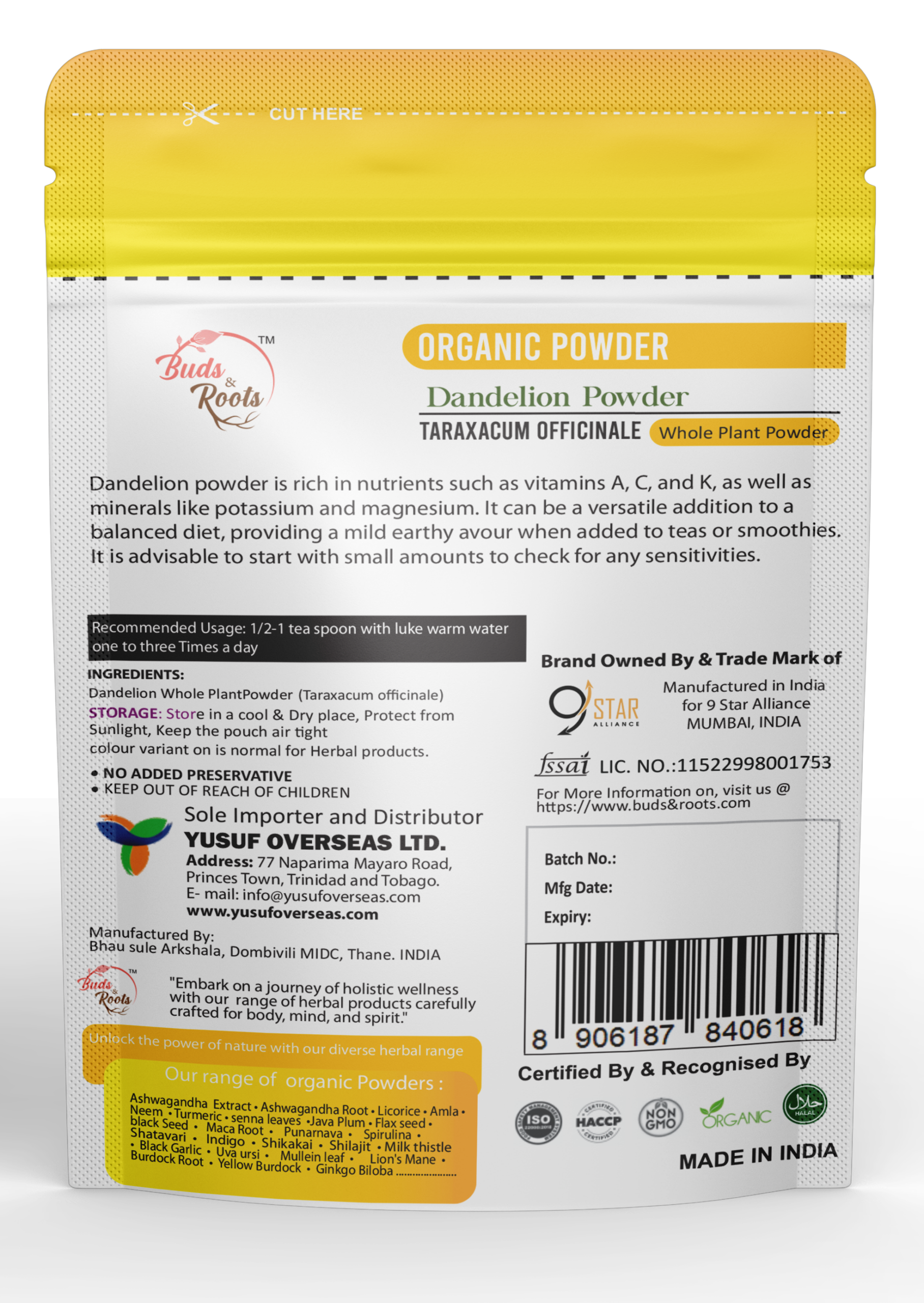 • 100% pure and organic dandelion root powder