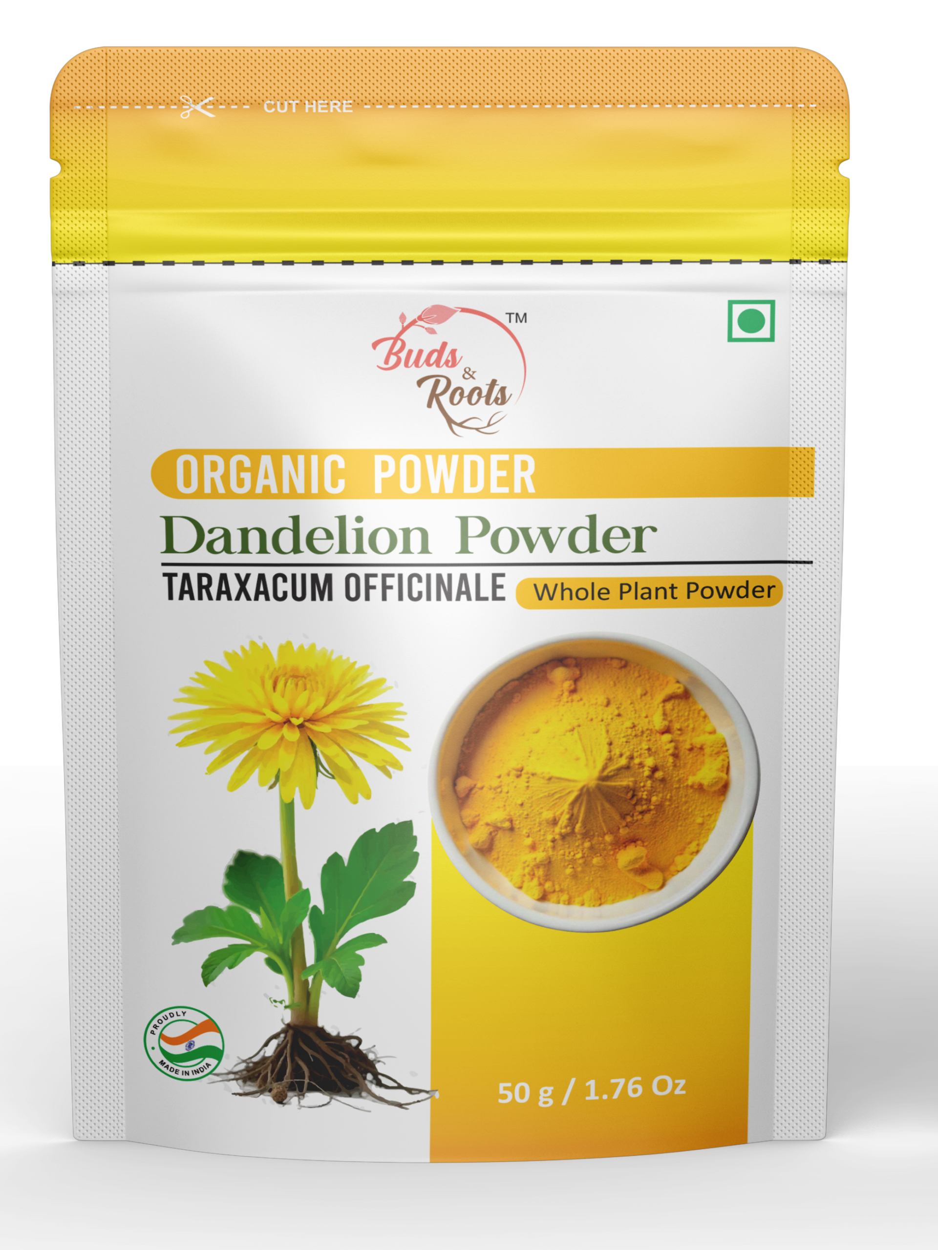 Buds & Roots Dandelion Organic Powder is a premium herbal supplement made from the roots of Taraxacum officinale. Carefully sourced and finely processed, this nutrient-rich powder is known for its natural detoxifying and digestive-support properties. Packed with antioxidants, prebiotic fiber (inulin), and essential minerals, it helps promote overall wellness, liver health, and gut balance. This 100% organic powder is free from additives, chemicals, and preservatives, making it ideal for daily herbal nutrition.