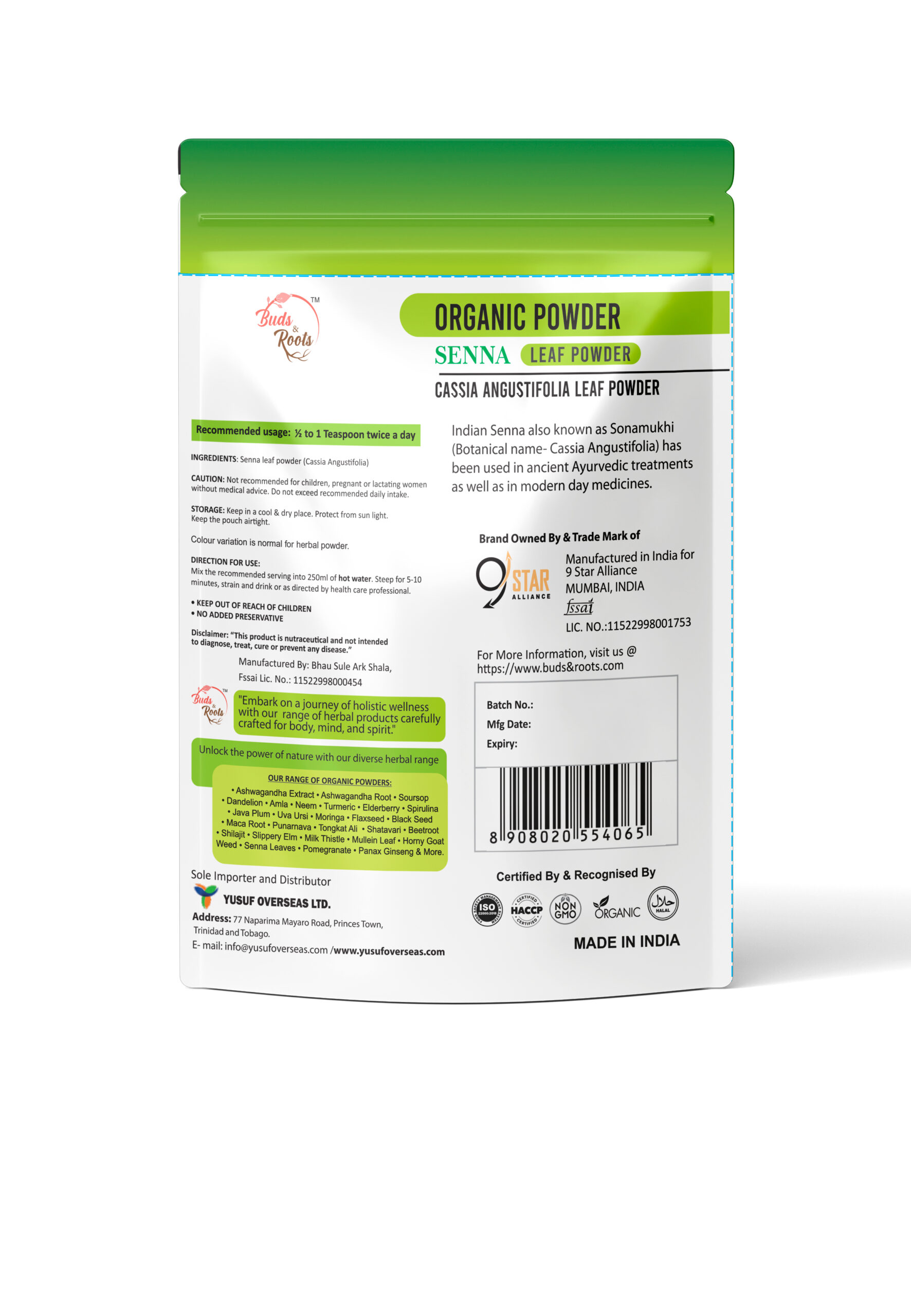 Buds & Roots Senna Leaf Powder is made from carefully dried and finely ground senna leaves, a well-known herb traditionally used in herbal wellness practices. Senna leaves have long been valued for their natural properties that help support bowel regularity and digestive comfort. Rich in natural plant compounds, senna leaf powder is commonly used as part of traditional formulations that support digestive balance and natural cleansing. Its herbal nature makes it suitable for incorporation into wellness routines.