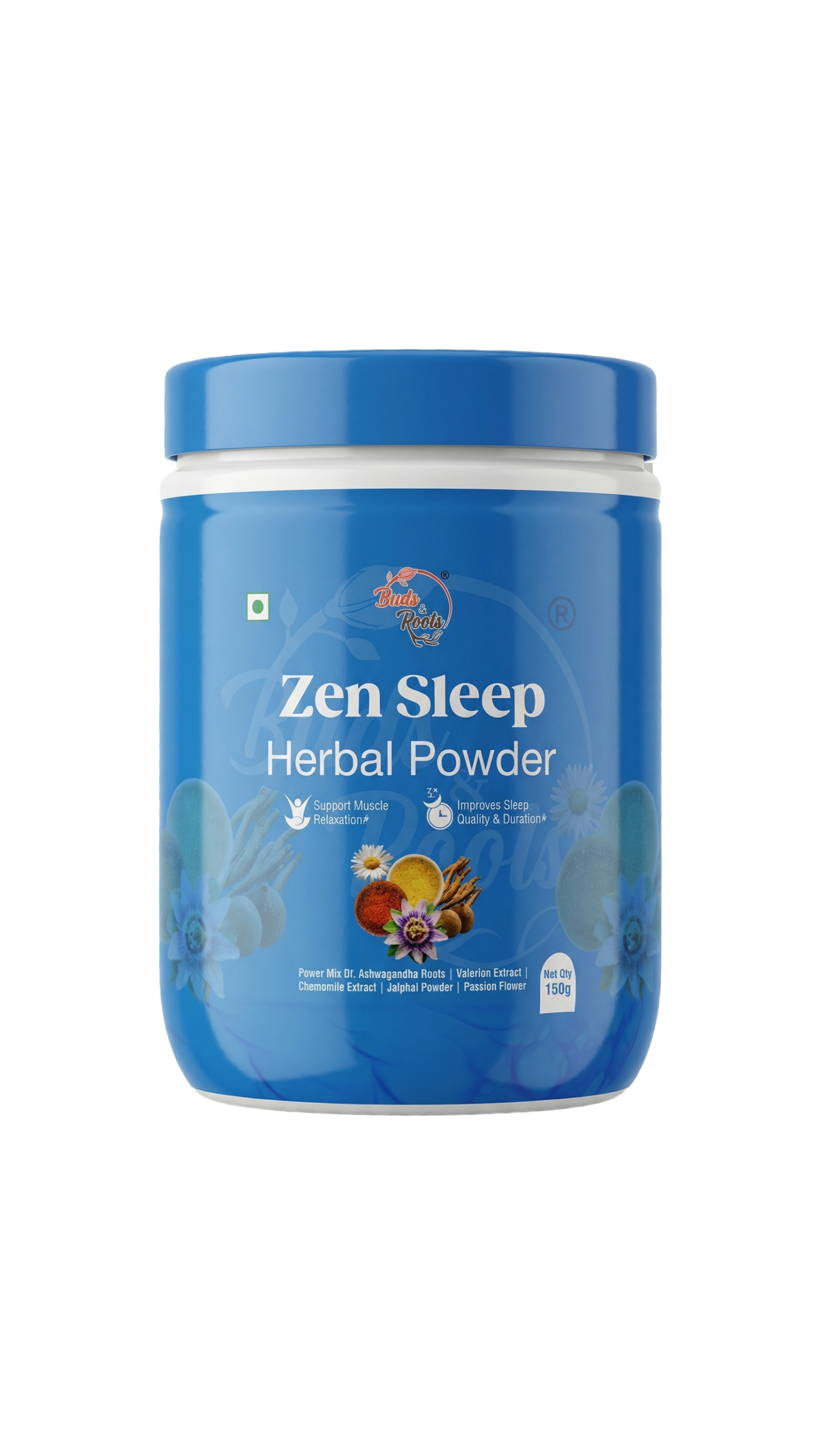 Buds & Roots Zen Sleep Herbal Powder is a natural blend of carefully selected herbs designed to support restful sleep and relaxation. Crafted with traditional wellness ingredients, this herbal formula helps calm the mind, reduce stress, and promote a peaceful night’s sleep. Ideal for those facing sleep disturbances, stress, or irregular sleep patterns, it works gently without causing dependency, helping you wake up refreshed and energized.